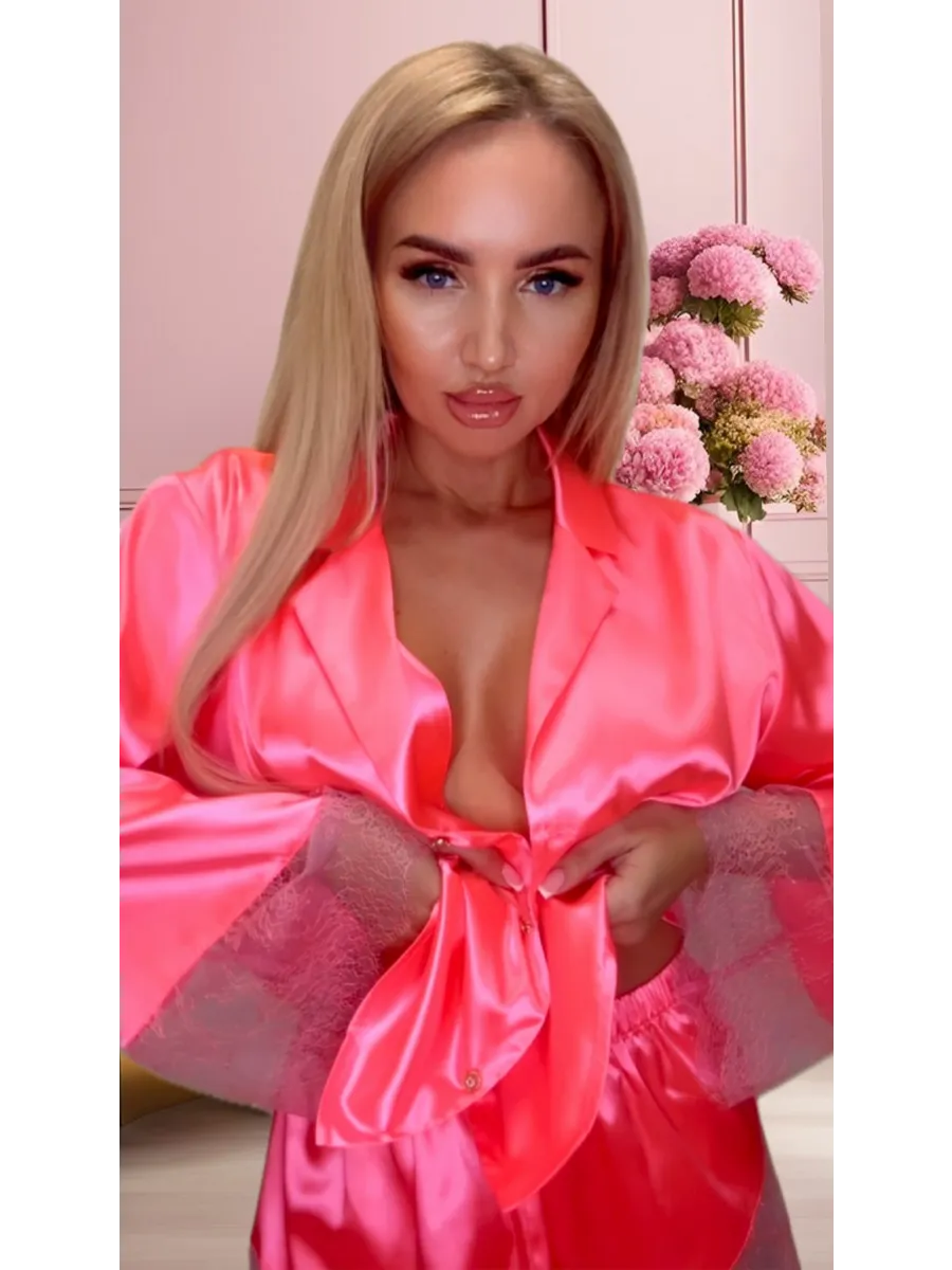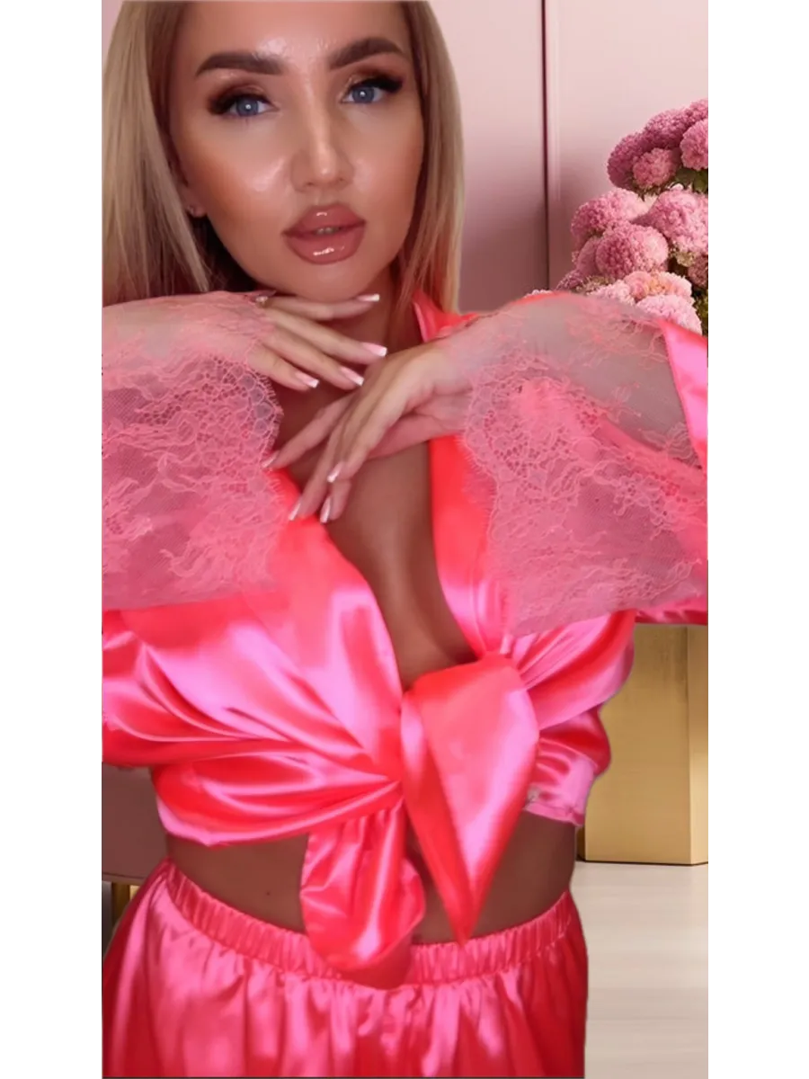 Элегантный домашний костюм из атласа-стрейч с кружевом. Роскошный комплект для особенных моментов и комфортного отдыха.