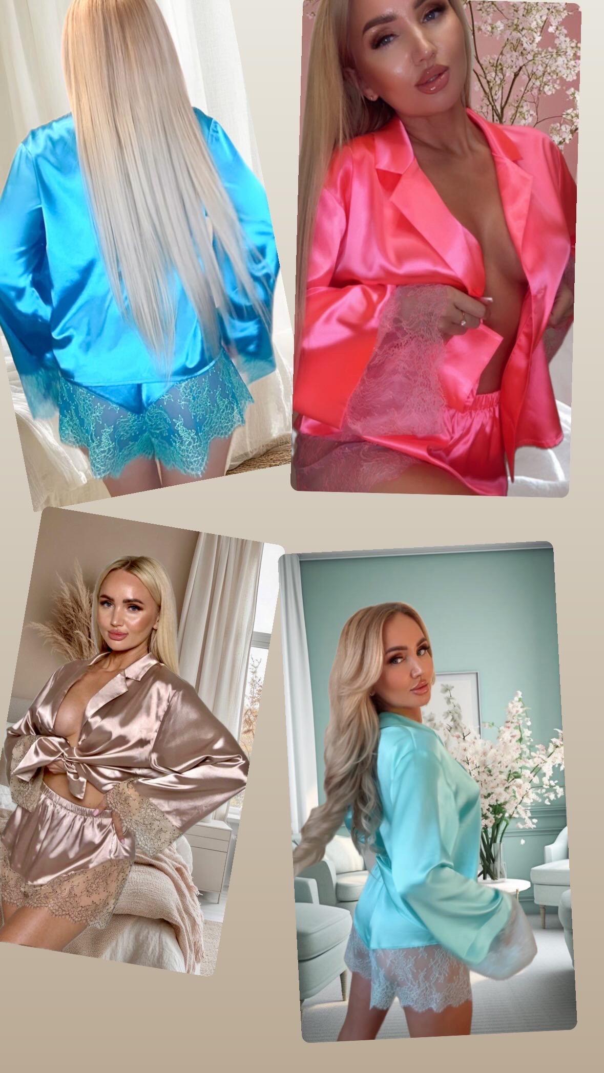 Элегантный домашний костюм из атласа-стрейч с кружевом. Роскошный комплект для особенных моментов и комфортного отдыха.