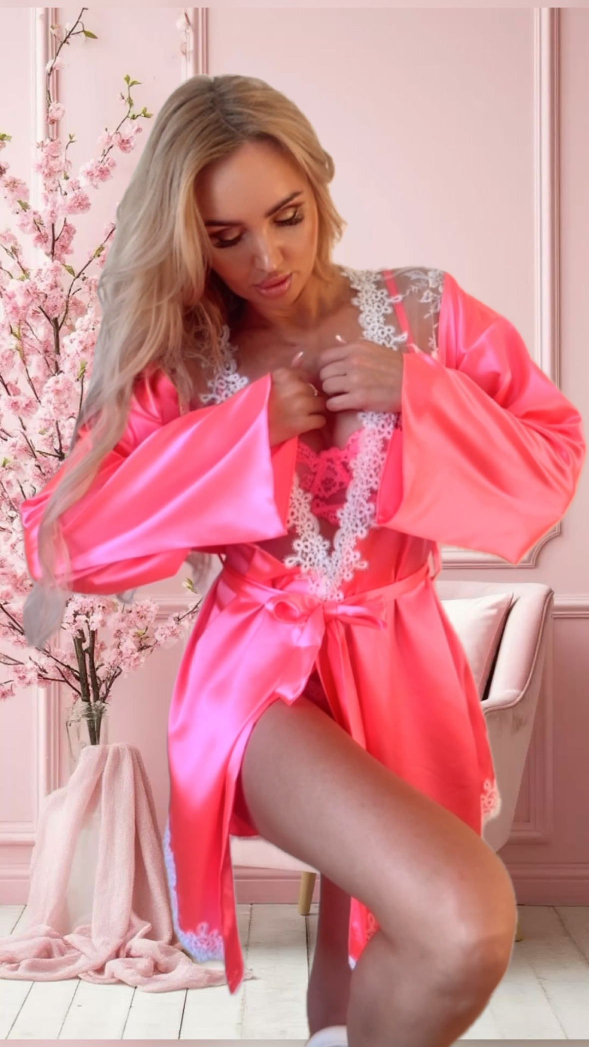 Элегантный халат из качественного атласа-стрейч с кружевом.