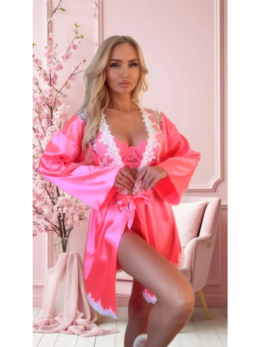 Элегантный халат из качественного атласа-стрейч с кружевом.