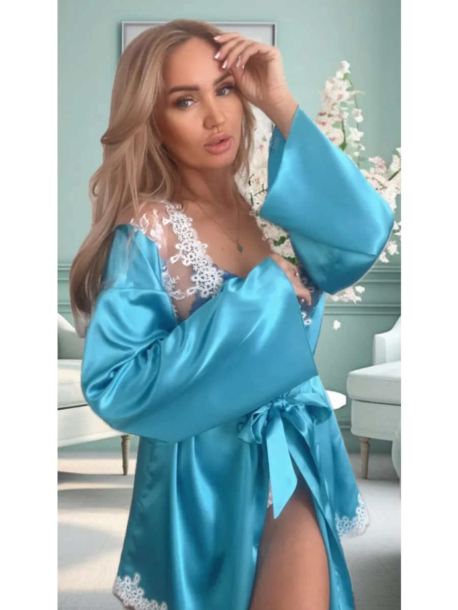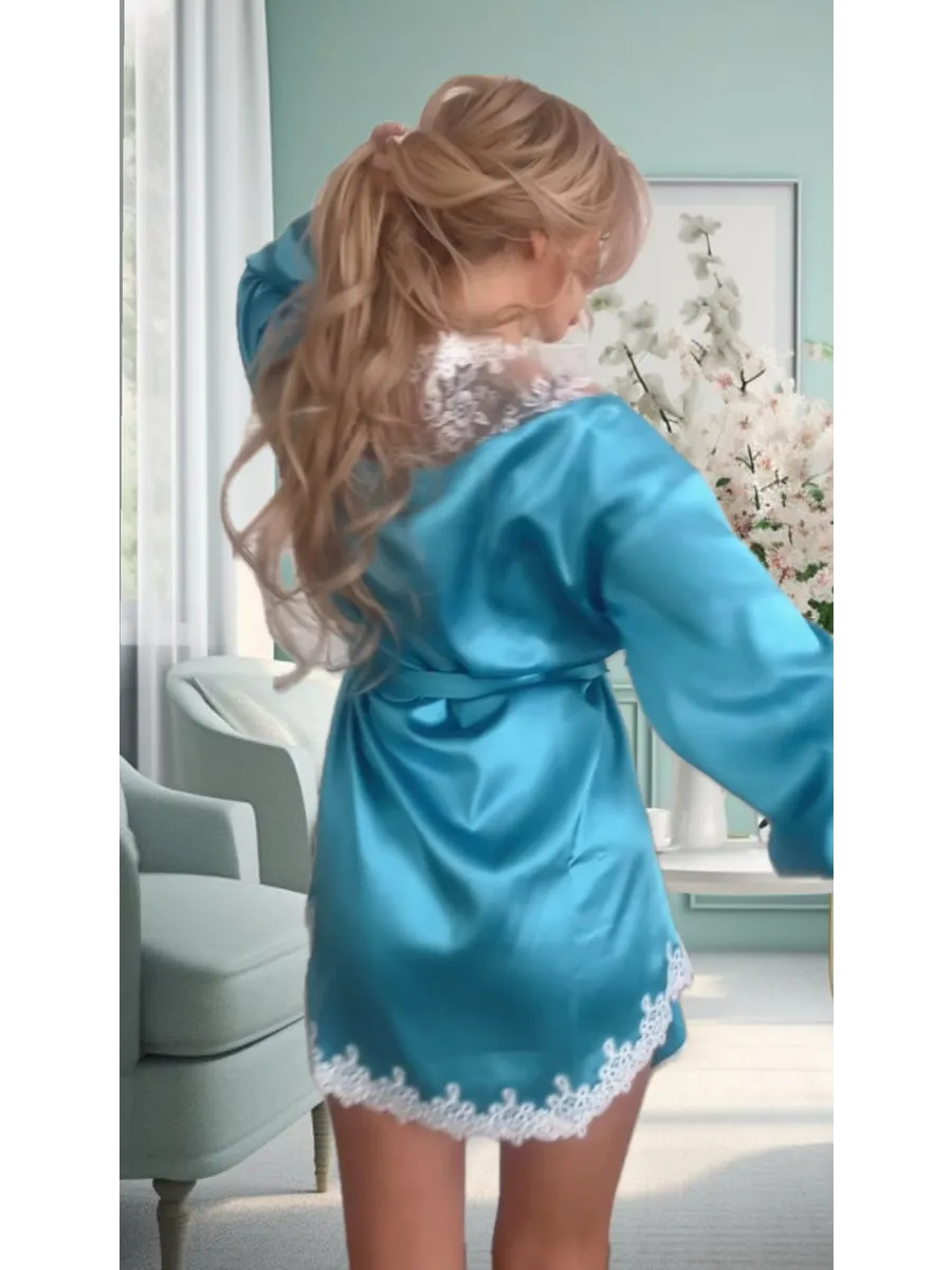 Элегантный халат из качественного атласа-стрейч с кружевом. Изысканная домашняя одежда для романтических моментов.